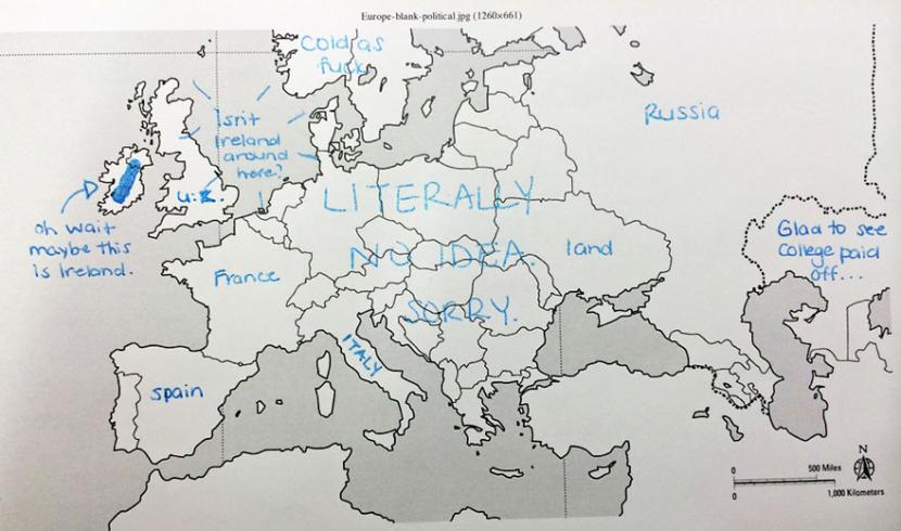 Test ten pokazuje niewiedze mlodziezy hamerykanskiej dotyczacej geografii Europy. Smieszne, nie. Bardzo po pas. Sprobojmy tacy, madrzy opisac hameryke i umiejscowic Montane i Utah? No nie potrafimy. Wiemy o hameryce i Kanadzie. Slonecznej Kalifornii i Nowym Meksyku. Mylimy Iowa z aJOLA. Czy nie?